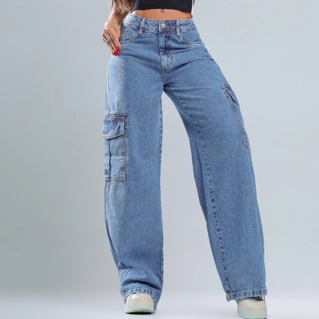A Calça Jeans Cargo Feminina Cintura Média combina estilo, conforto e atitude. Com cintura média e pernas amplas, valoriza a silhueta e garante liberdade de movimento.